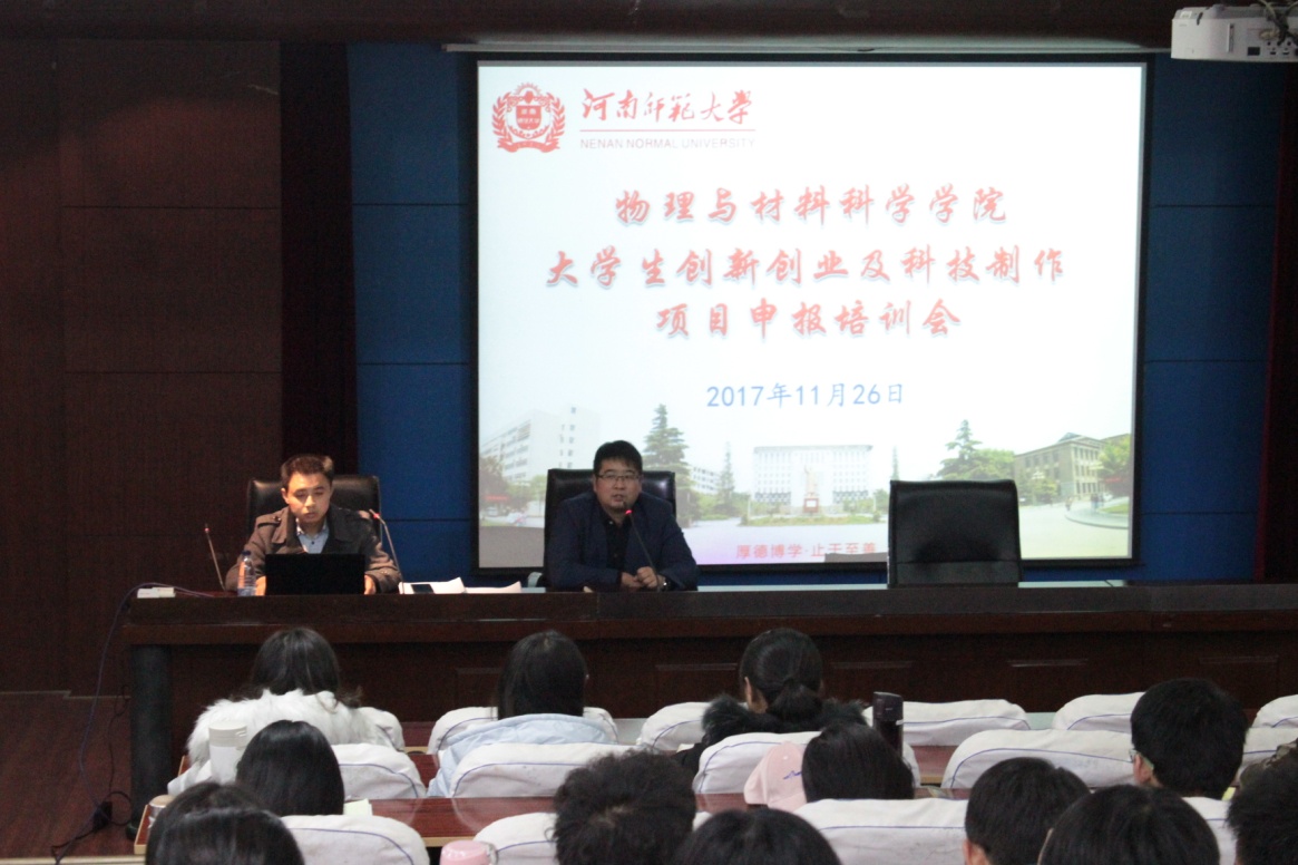 为激发学生创新创业热情,加强对学生创业比赛指导,提升学生参赛作品质量,11月26日晚,物理与材料科学学院在物理南楼报告厅召开大学生创新创业及科技比赛项目申报培训会。生命科学学院王科老师应邀为我院学生做了专题培训,培训会由院团委负责人王丹云主持。
