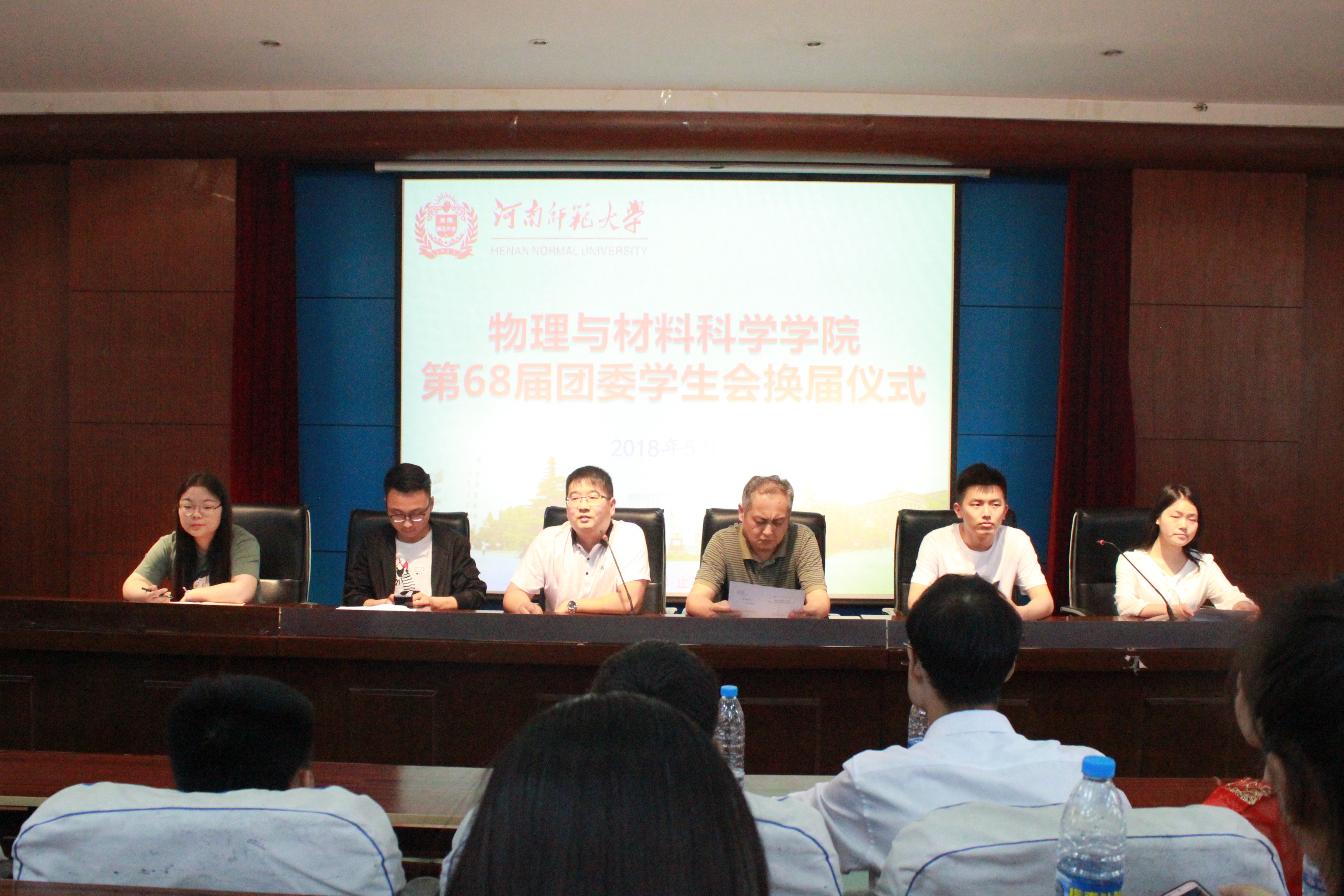5月5日,物理与材料科学学院团委学生会换届仪式暨学生干部培训大会在物理南楼报告厅举行。院党委副书记陈明银,第67届、68届团委学生会全体成员参加活动。仪式由院团委负责人王丹云主持。