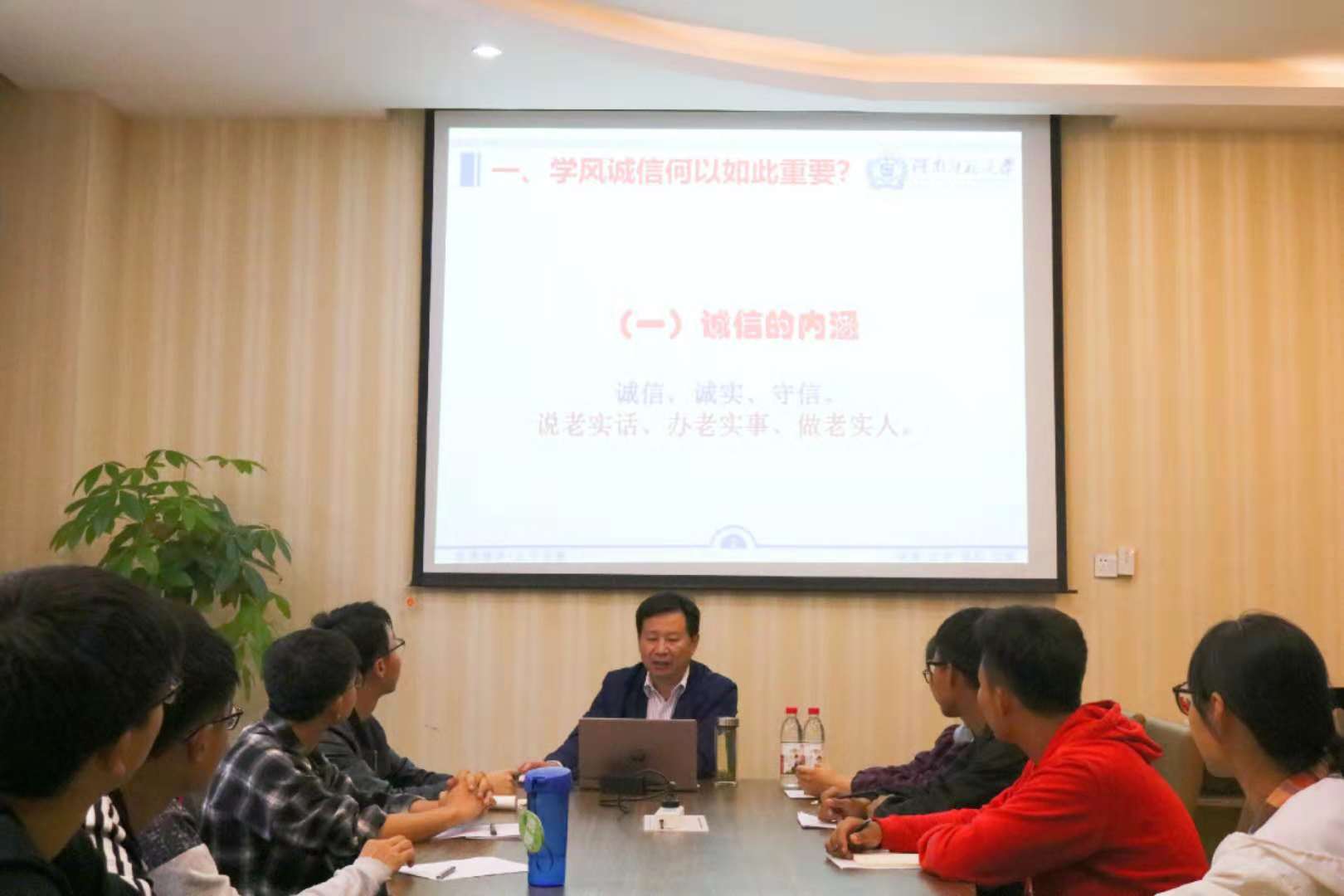 养浩然之正气,育诚信之学风。为进一步加强学院学风建设,帮助新生迈好入学第一步,10月9日,我院在北楼A116大学生成长发展辅导工作室举行“学风诚信,从我做起”专题讲座。我院党委书记李清富担任主讲,18级各班学习委员、物理学专业部分学生代表等共同聆听了此次讲座。