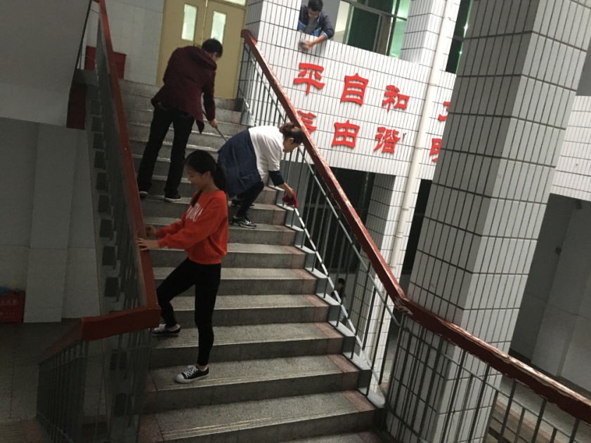 2016年10月19日上午,第一小组全体入党积极分子在指导老师刘宁的带领下,参与本次“两学一做”宣传实践活动。第二组入党积极分子同学在王春老师带领下,参与了本次党课实践之清理教室垃圾活动。10月20日第三组入党积极分子同学在孙晓老师带领下,参与了本次党课实践活动之打扫整理新554教学楼活动。