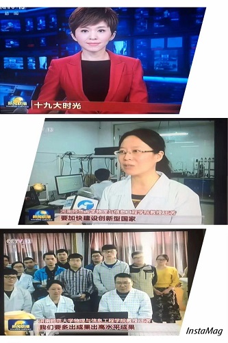 10月19日7点42分19秒,中央电视台《新闻联播》播出《【十九大时光】谋幸福 谋复兴 走好新时代的长征路——十九大报告在各地干部群众中引起热烈反响》,新闻中,物理与材料科学学院刘玉芳课题组成员王芳接受采访。王芳说:“习近平总书记在报告中指出,要加快建设创新型国家,在今后的工作中,要多出高水平成果,把创新落在发展上。”