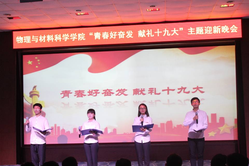 10月24日晚,物理与材料科学学院在物理北楼报告厅举行了2017级迎新晚会。院党委书记李清富、院长杨宗献、副书记陈明银、副院长焦照勇、各专业教师、各年级辅导员、班主任、学生家长代表,2017级全体新生共同观看了晚会。