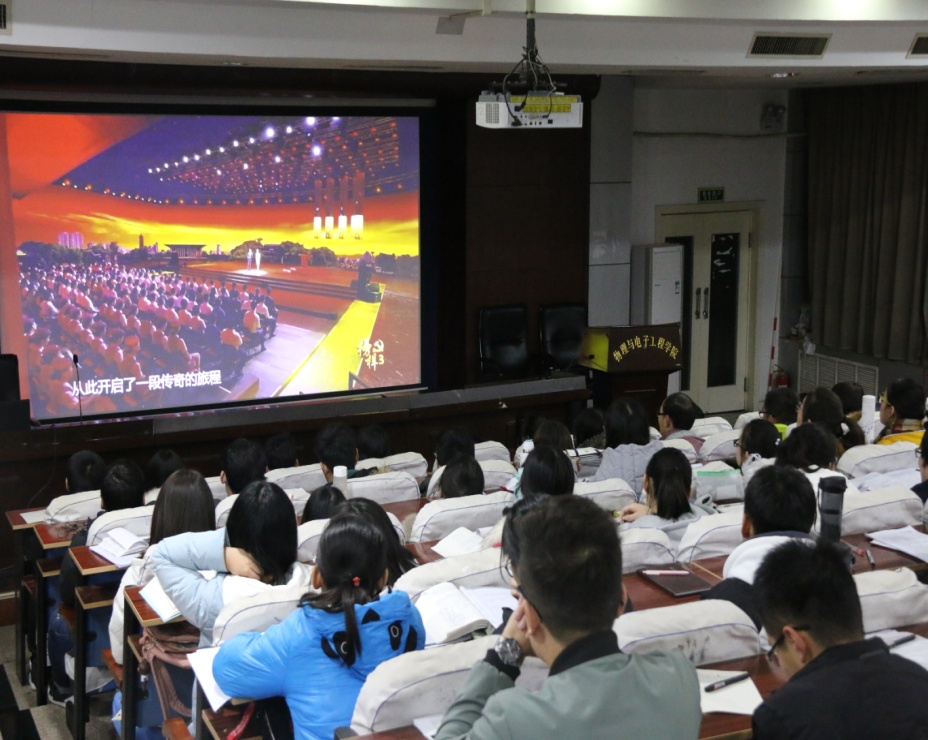 为丰富党课教学模式,通过多媒体展现新时代典型模范事迹,讲好新时代新故事,12月8日晚,我院组织70名积极分子在物理南楼二楼报告厅集中观看《榜样3》专题节目。