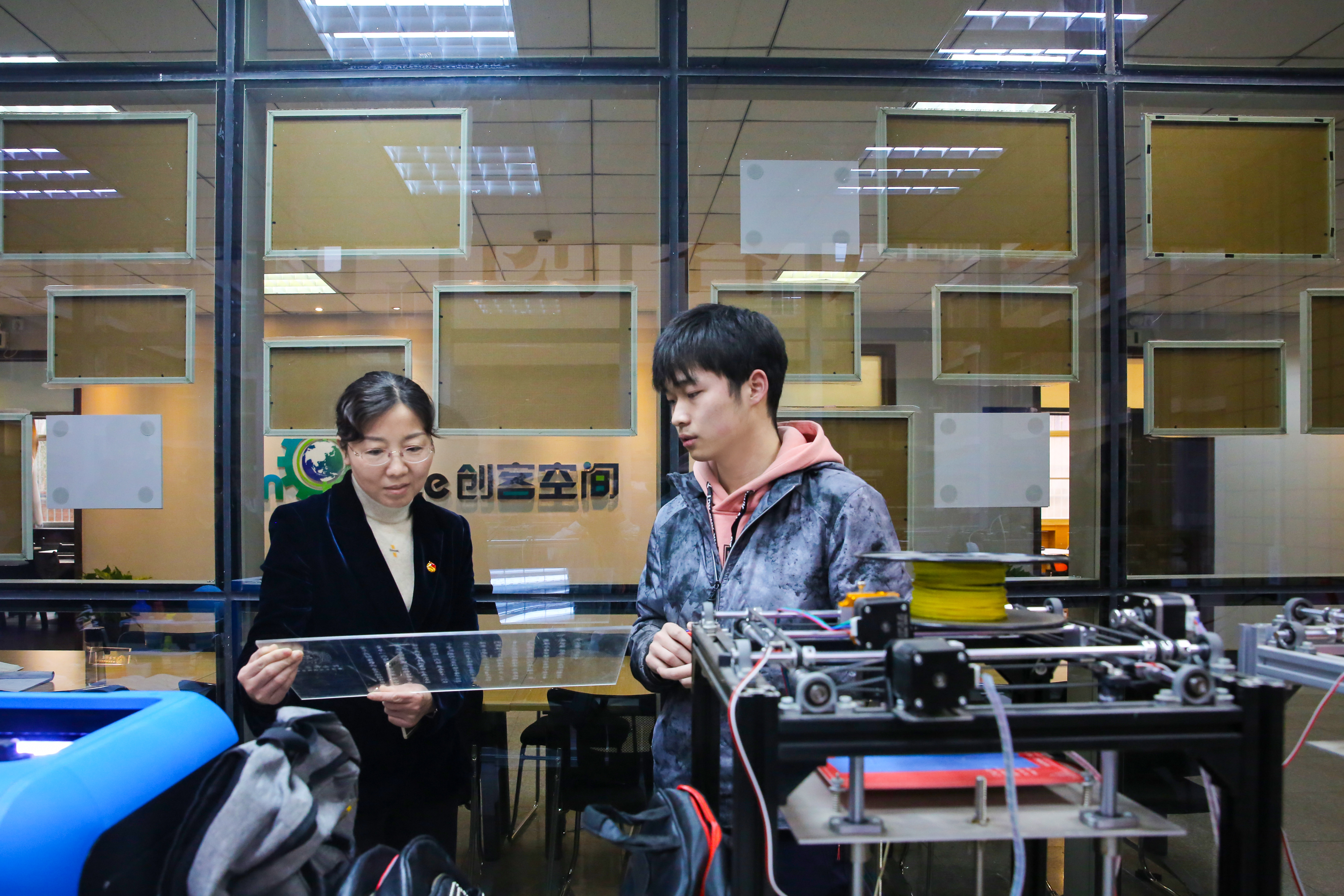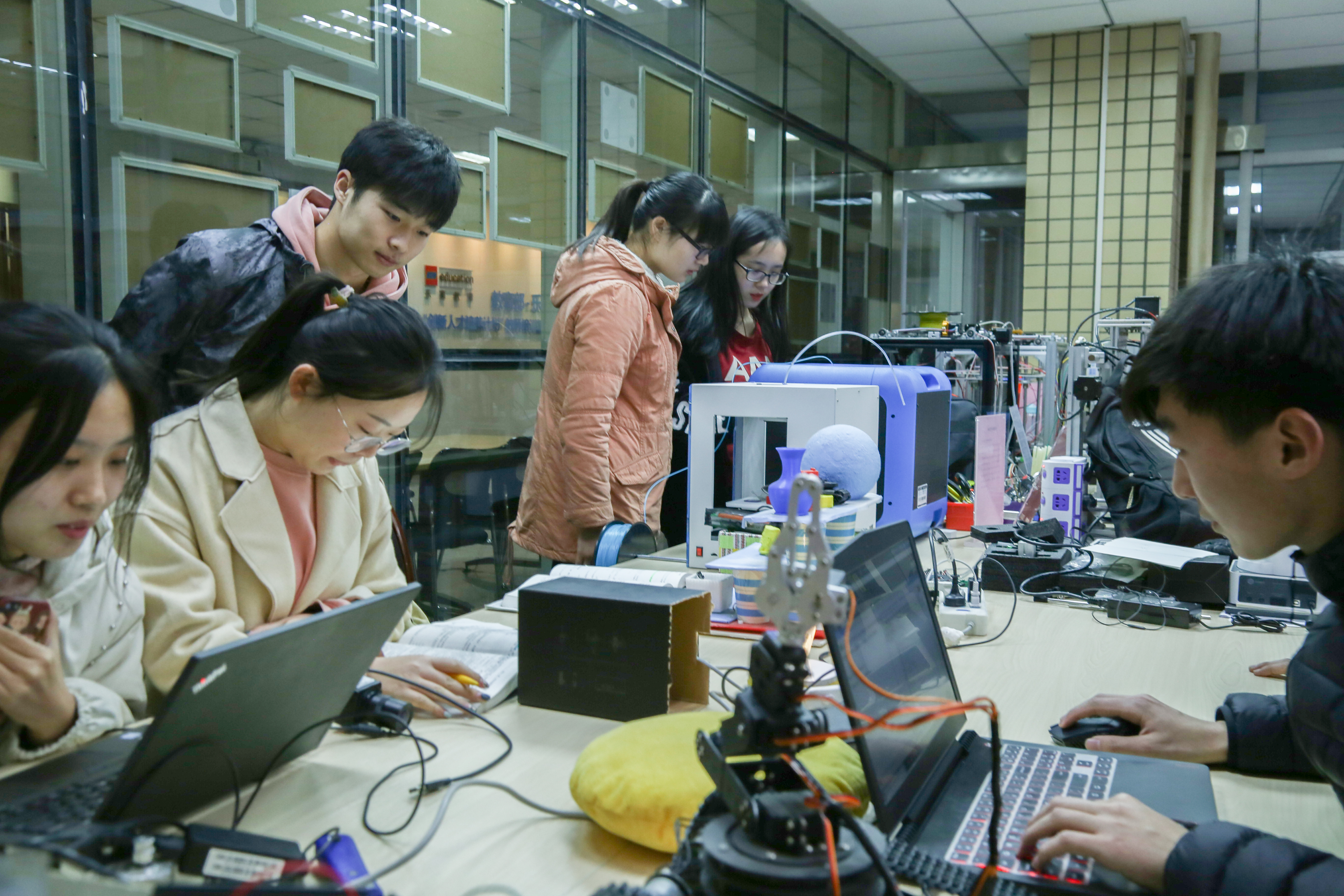 调研组一行仔细参观了我院青年汇创客广场、创客培训室、学生科技创新实验室、学生创客空间等。学院团委书记王丹云向调研组详细汇报了我院大学生创新创业中心的工作开展及学生创新创业取得的成绩与遇到的问题。