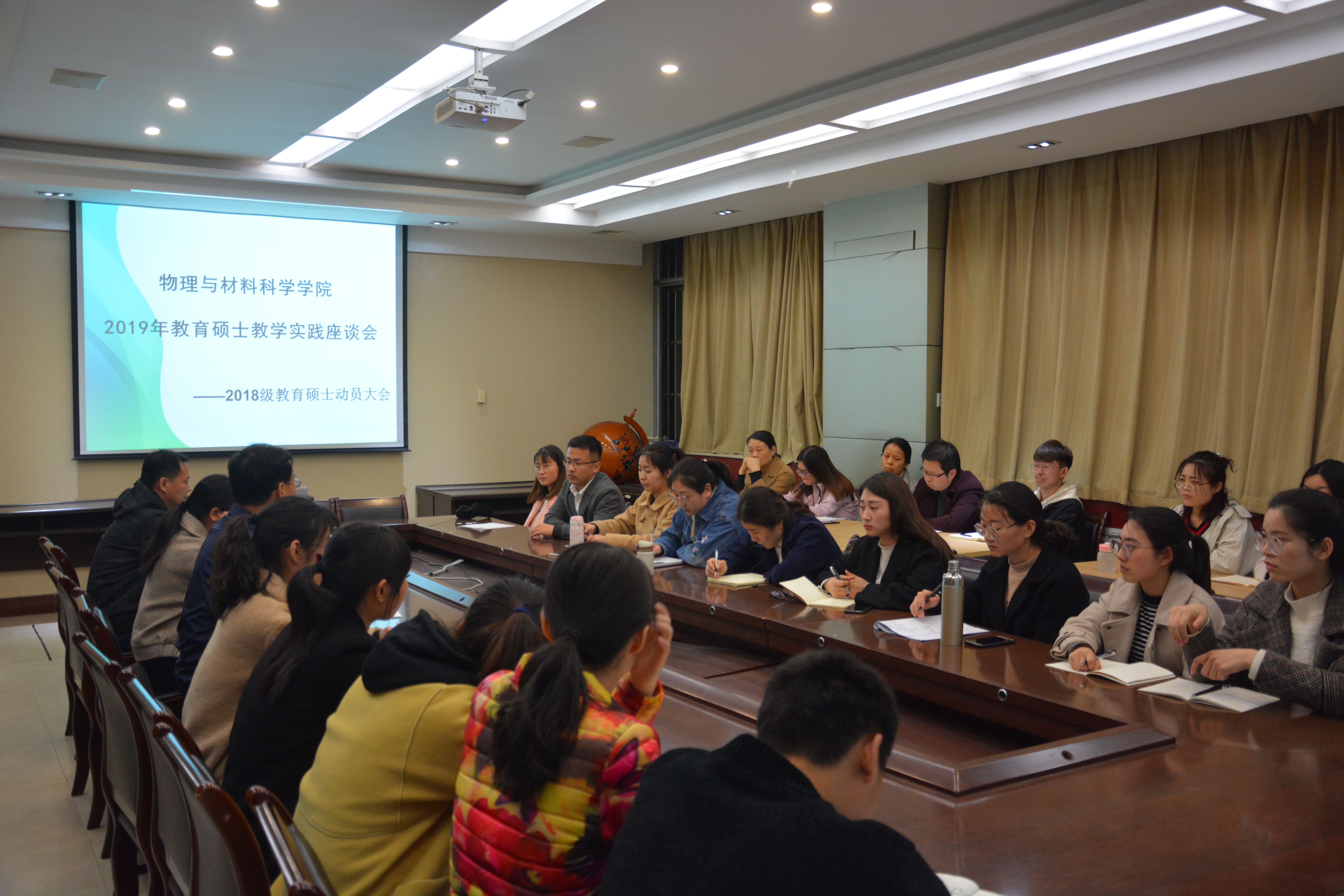 3月24日晚,我院在物理北楼C103召开了2019年教育硕士教学实践座谈会。学科教学(物理)教育硕士校内教育实践指导教师侯新杰、陈运保、杜爱慧和2017级、2018级教育硕士全体研究生参加了此次座谈会。