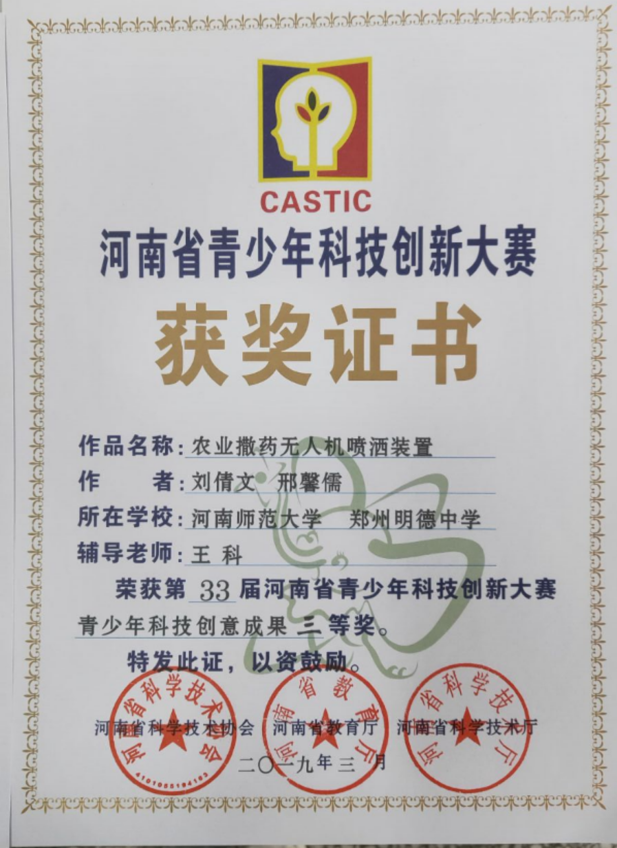 近日,由河南省科协、河南省教育厅、河南省科技厅联合举办的第33届河南省青少年科技创新大赛落下帷幕。我院学生斩获二等奖一项,三等奖一项。