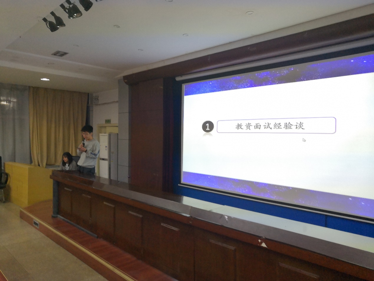 在交流会上,辅导员老师首先介绍了学生们目前所面临的困难以及当前大多数学生的学习情况,并给出了切实有效的方法。随后来自物理学二班的侯朋飞、王丹等已经通过教师资格证面试的多名同学分别结合自己考试的经验分别从着装、题型、流程等方面诙谐而又详细地向大家介绍了如何备考教师资格证面试,回答在座同学所存在的疑惑,让大家对于接下来所面临的面试充满信心。接着进行学习心得小分享。邀请了王君岩等英语四六级高分通过的同学介绍他们学习英语的经验。各班的班主任老师依次进行发言,结合他们自身的考研经历,在一边调查同学们考研情况的同时,一边告诉我们该如何选择院校、以及如何进行考研的复习,同时对以上同学的发言进行总结。最后交流会在一部振奋人心的励志视频中结束。