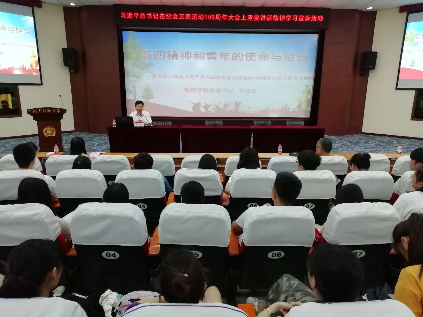 为帮助青年学生正确认识五四运动的历史地位、准确理解五四精神的时代方位、科学把握新时代青年的发展定位,6月3日中午,物理与材料科学学院举行习近平总书记在纪念五四运动100周年大会上重要讲话精神学习宣讲活动。学院全体政工干部、学生党员、入党积极分子、学生干部聆听了报告。