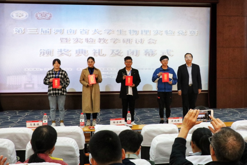 我校物理学院党委书记李清富宣布获奖名单。经过紧张激烈的角逐,共决出一等奖4队,二三等奖若干队。河南省物理学会副理事长、我校物理学院院长杨宗献致闭幕词。