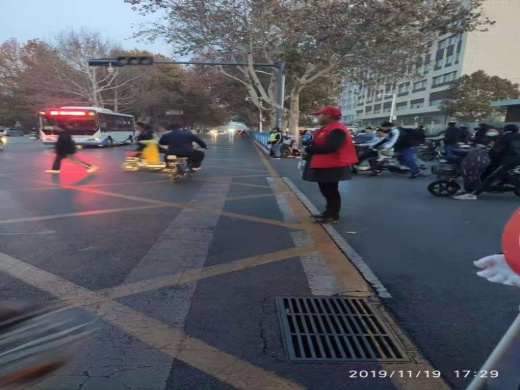 迎着早晨的太阳,伴着落日的余晖,我们的执勤小分队一个个穿着红马褂、头戴红帽、手持引导牌,形成一道靓丽的风景线。学生上下学期间,为了维护学生们的安全,志愿者们及时配合交警人维护正常的交通秩序,引导车辆礼让行人,让学生们能够在斑马线上安全有序的通过。