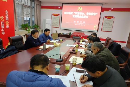 12月9日下午,物理学院领导班子在党建活动室召开2019年度“不忘初心、牢记使命”专题民主生活会。党委副书记、工会主席臧振春出席会议并作点评讲话。校纪委相关负责人、学院领导班子成员参加了会议。