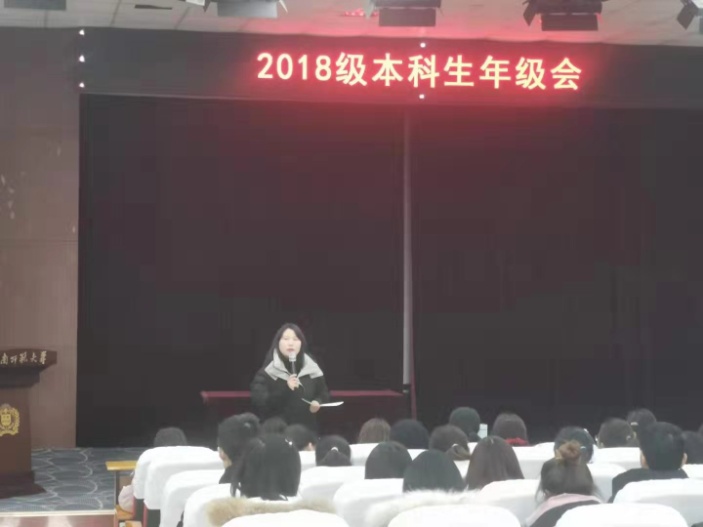 诚信考试,从我做起。为严肃考风考纪,引导学生遵守校纪校规,诚信考试,2020年1月7日,学院于物理北楼三楼报告厅开展2018级本科生年级大会。年级辅导员熊子瑞主持本次年级会。