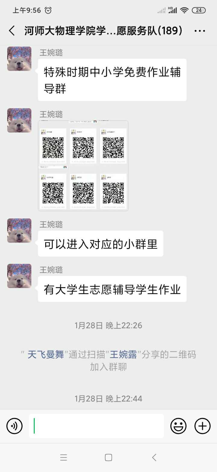 除了是一名共产党员,她还有另一个身份——物理专业师范生,看到国家提出“停课不停学”的要求后,她主动和学校联系,在学院团委老师的支持下,联合物理学院学生会主席骈陲、生命科学学院学生会主席陈炳全等发起了“助力直播课,线上答疑惑”辅导中学生学习活动。在QQ和微信群中,初中高学弟学妹编号提问,学长学姐进行一对一解答。“这个问题,我来回答”是群里出现最多的话,可总还是有人抢不到解答问题的机会。有志愿者幽默的调侃到:现在答疑解惑也要拼速度了,刚刚又慢了。目前,我校已有300余名青年志愿者为初高中1000余名学生进行答疑解惑,受到学生和家长的充分认可和一致好评。
