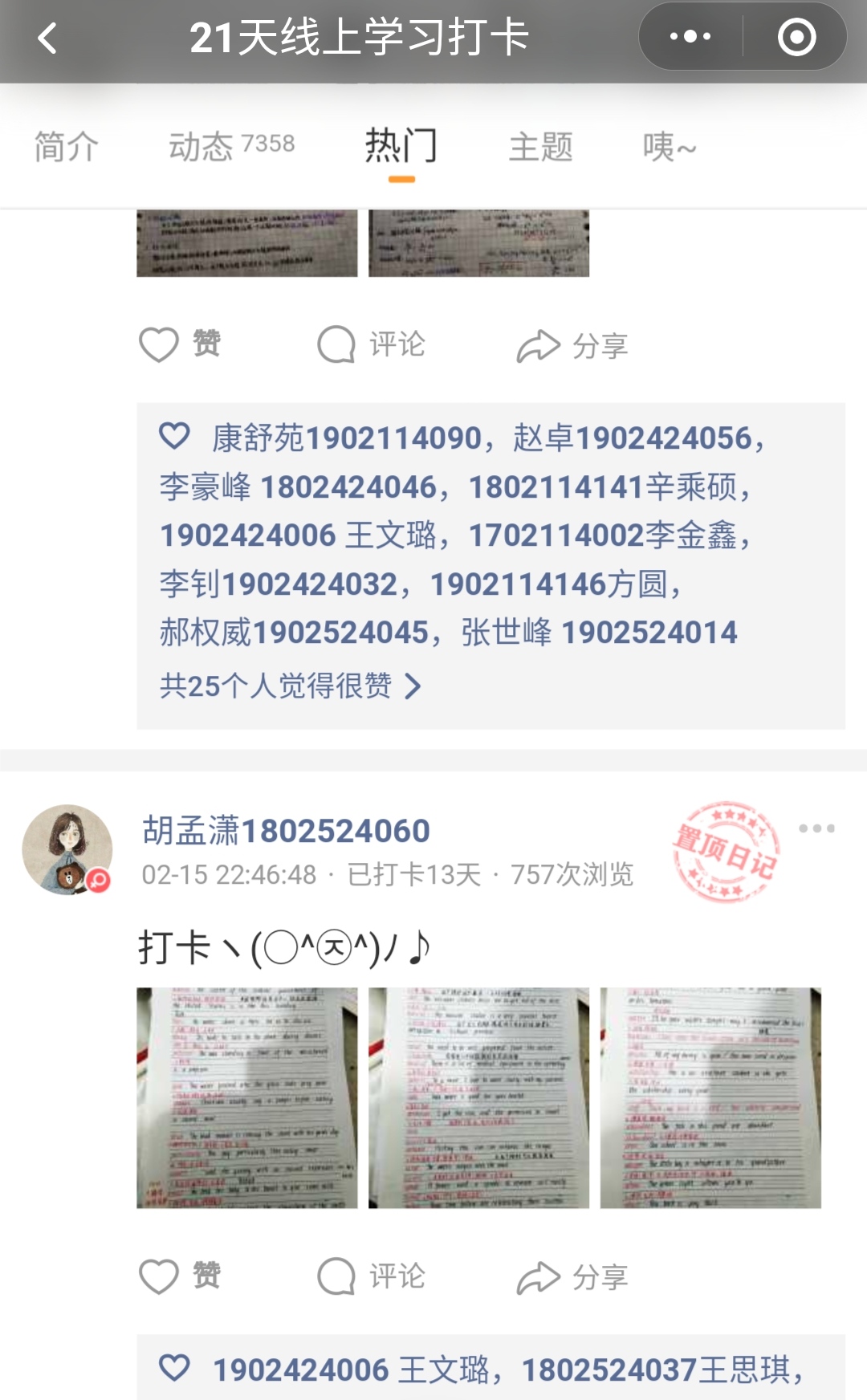 停学不停课,宅家不宅心。为激励广大青年学子相互学习、相互督促、共同提高,我院团委、学生会举行“宅家不宅心,21天线上学习”打卡活动,活动由团委宣传部、学生会学习部发起。活动通知发出后,各年级认真组织、广泛动员,学生们坚持打卡、积极参与。