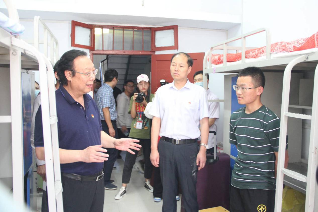 18日上午11点30分,校领导赵国祥、陈广文、梅宪宾、李学志、张尚字、刘玉芳以及相关部门负责人来到学院迎新点视察迎新工作。学院党委副书记赵旭向学校领导汇报了学院2020级新生报到情况,并重点介绍学院迎新的暖心举措和创新工作。赵国祥书记对学院为新生准备暖心礼物表示肯定。随后,赵国祥来到我院新生宿舍,亲切地和新生们交谈,询问同学们是否适应新的环境、是否有生活上的困难。赵国祥嘱咐他们要尽快适应大学生活,明确目标不松懈,同时养成良好的卫生习惯,保持干净整洁的生活环境。