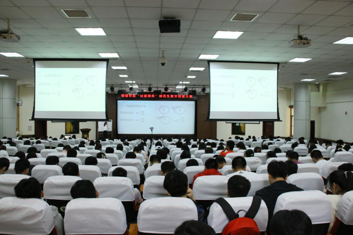 为更好搭建“以赛促学、以赛促教、以赛促训”的师范生教学技能学习交流平台,有效提高物理学院师范生教学技能整体水平,努力培养造就更多“有理想信念、有道德情操、有扎实学识、有仁爱之心”的基础教育教师人才。9月27日下午,由学院基础教学部和学院团委共同主办,学院学生会承办的“田家炳杯”师范生教学技能大赛在物理北楼三楼报告厅举行。学校研究生工作部副部长、研究生院副院长马春旺,学院物理学科教育研究所所长侯新杰,伟德官网下载苹果版附属中学高级教师郭卫强,物理学科教育研究所陈运保、杜爱慧,基础教学部张计才,团委书记王丹云等七位老师参加本次活动并担任评委。学院物理学专业师范生360多人观摩了本次比赛。