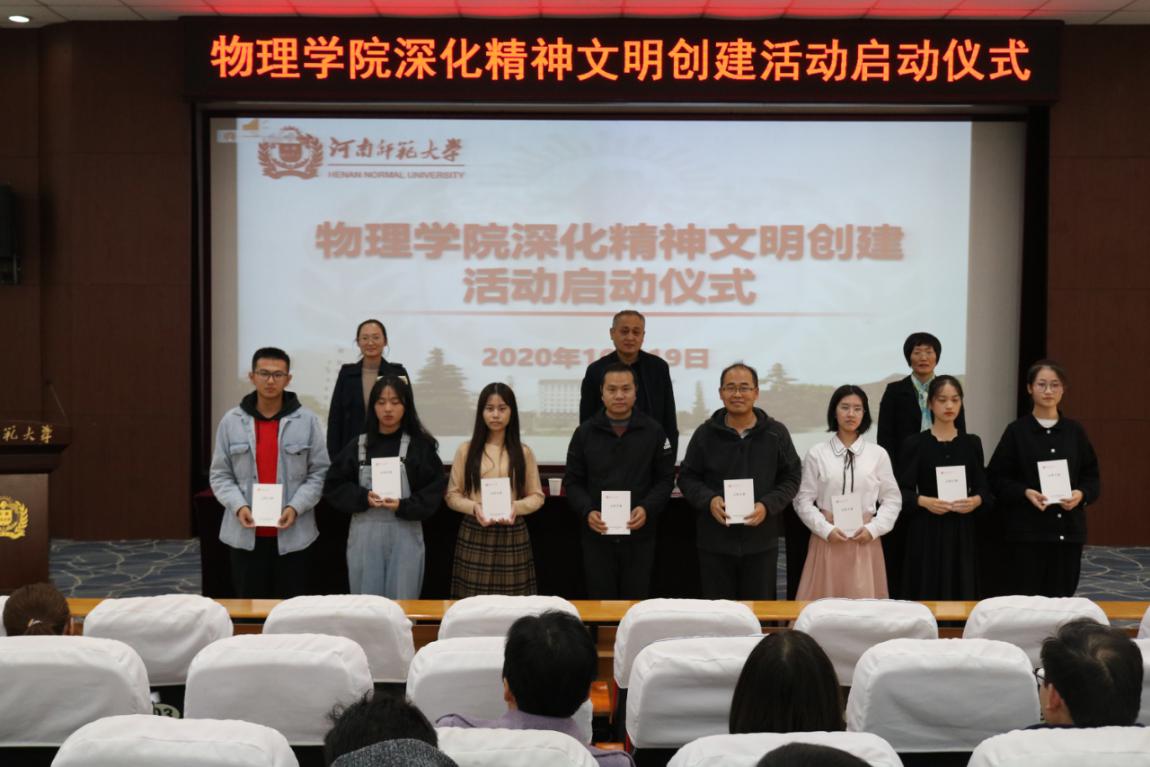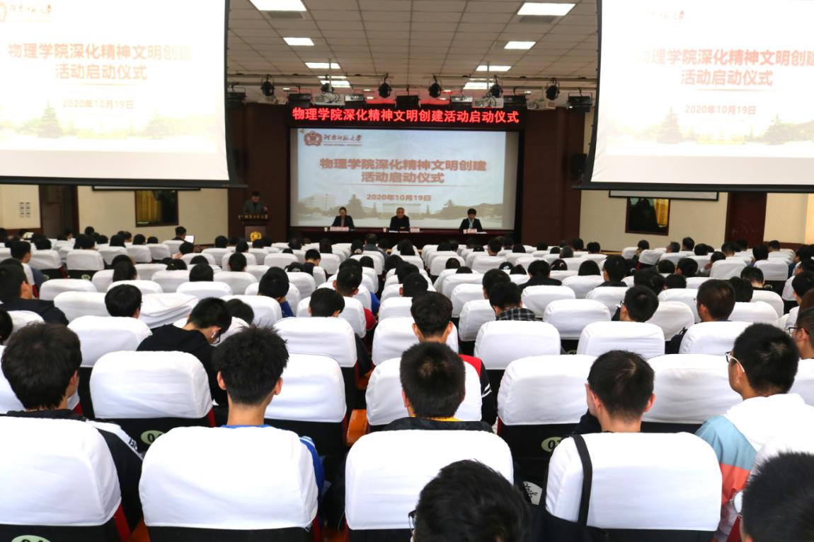 为进一步加强物理学院精神文明建设,规范师生教学生活秩序,优化育人环境,助力我校创建全国文明校园,根据学校会议精神要求,10月19日下午,物理学院在物理北楼三楼报告厅举行深化精神文明创建活动启动仪式。学院党委书记陈明银,副书记赵旭,全体教职工和学生代表360余人参加了活动。仪式由学院党办主任刘宁主持。