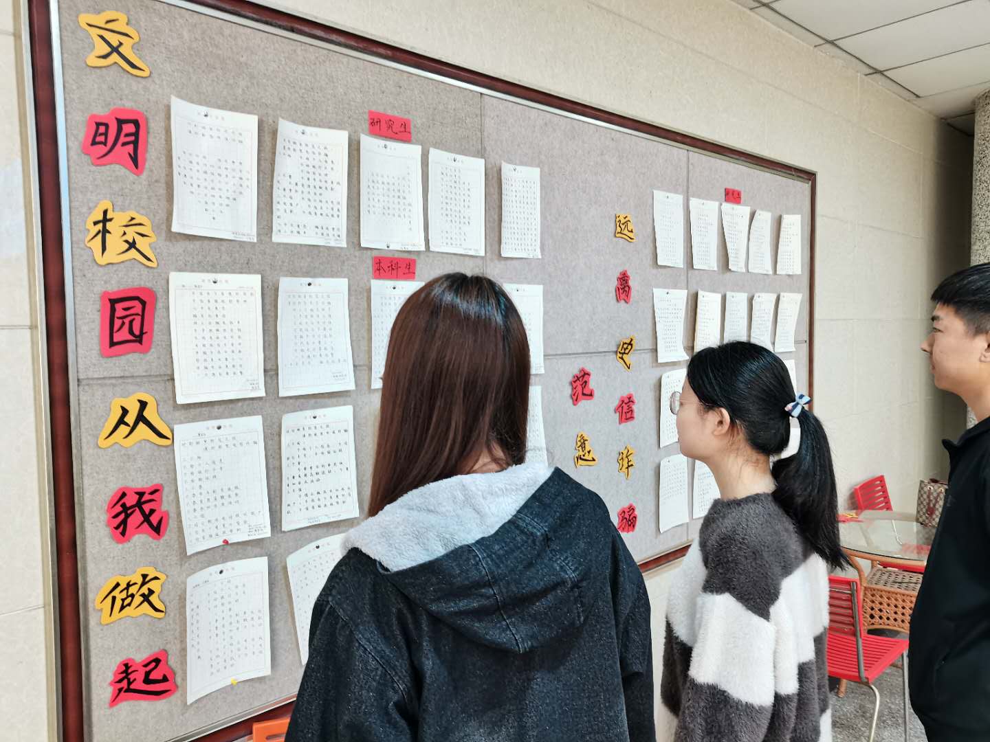 为积极引导学生养成文明行为习惯和健康的生活方式,加强学生安全教育,提升学生安全防范意识,努力营造“高雅、文明、安全、和谐”的育人环境,10月16—25日,我院团委举办以“文明校园,从我做起”“提升防范意识,远离电信诈骗”为主题的硬笔书法比赛。学院本科生、研究生共计1500余人参与本次比赛。