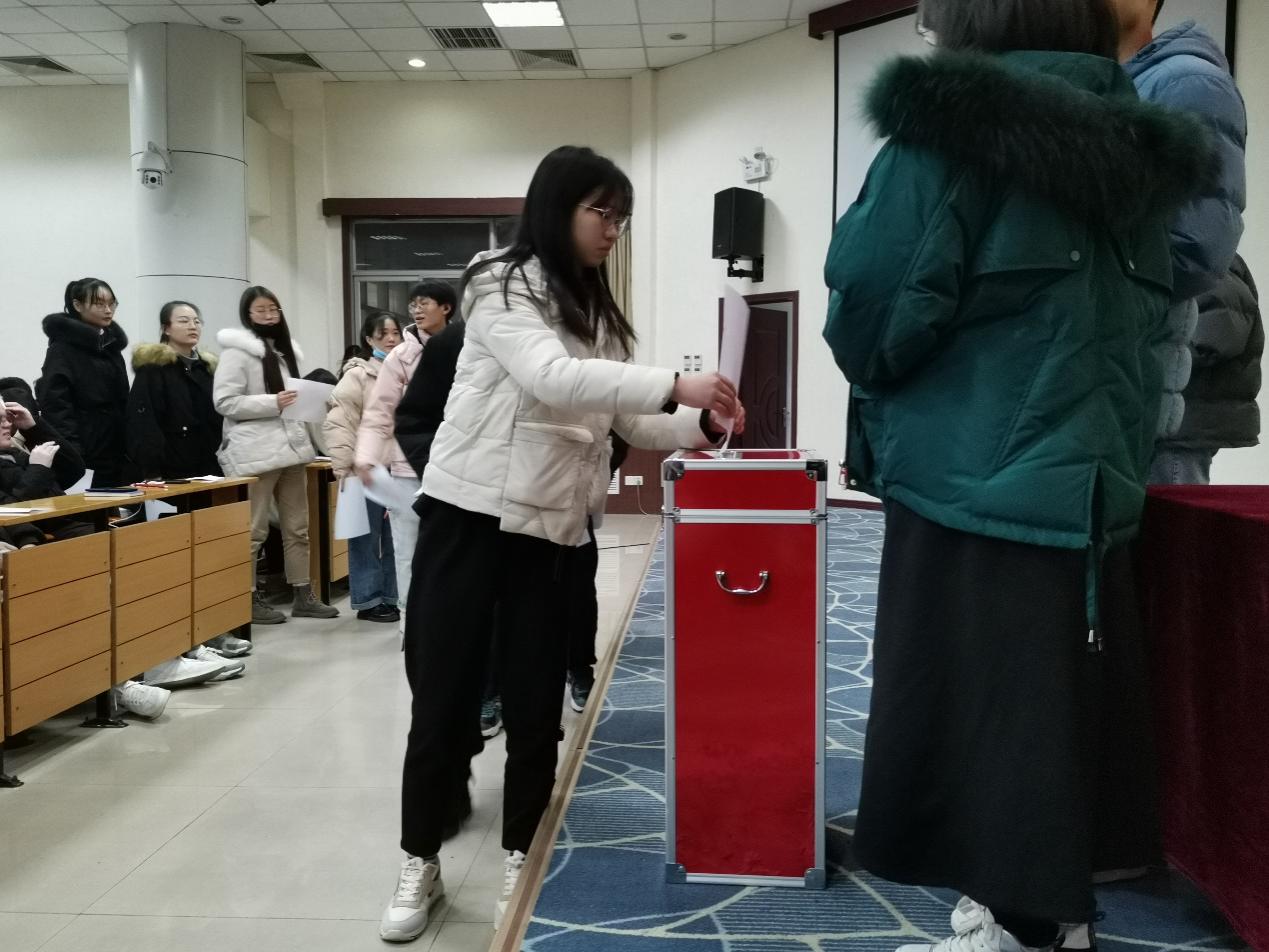 会议第一项,由2019级简敏宣读《伟德官网下载苹果版物理学院学生代表会议选举办法(草案)》,在场同学举手表决一致通过,薛贺文公布学院代表候选人预备人选名单,并对其做出相应介绍。现场举手表决通过王译童、李佳成、孙梦垚担任监票人,李洪志作为总监票人,陈意齐、单川担任计票人。全体学生秉着公平、公正的原则进行投票,大会的开展井然有序。