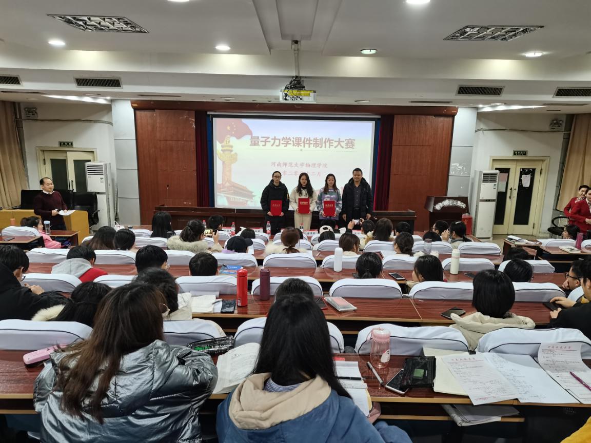 为充分调动学生学习量子力学课程的兴趣,加深对量子基本概念、基本规律和应用的能力,提高学生PPT课件的制作及应用水平,加强同学们的语言表达能力与整体综合素质,12月13日下午,由前沿物理与清洁能源材料河南省特色学科群、学院基础教学部、量子力学河南省一流课程团队、物理学院团委共同主办的量子科技课件制作暨讲课大赛在物理南楼报告厅举行。马春旺、付召明、王黎明、张计才、杨春洁、赵兴东等老师担任大赛评委。