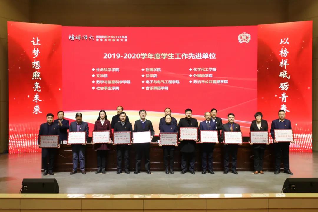 近日,我校举行2020年度“榜样师大”学生系统表彰大会,隆重表彰本年度学生系统涌现出的先进集体和先进个人。校领导赵国祥、陈广文、梅宪宾、李学志、李雪山出席大会。各学院书记、院长、副书记、全体辅导员、相关职能部门负责人、获奖先进集体代表、先进个人代表和学生代表参加表彰大会。