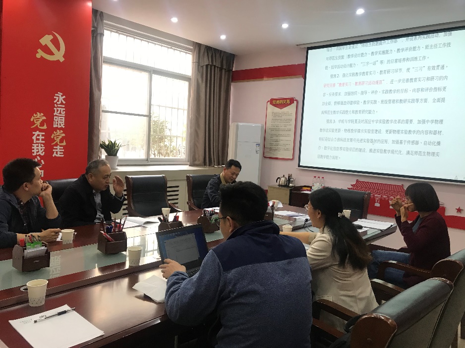为进一步落实改进师范类专业认证中存在的问题与不足,推进相关整改工作在本学期的开展,4月30日下午,我院在物理北楼A122举行了师范类专业认证(中学教育第二级)持续整改工作会。学院党委书记陈明银、教学副院长夏从新、物理系主任马淑红、高等物理教学部主任张计才、学院团委书记王丹云、物理学科教育研究所陈运保教授、杜爱慧博士、靳来鹏博士及相关工作负责人员参加了会议。