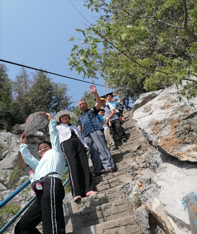 一大早,参加活动的教职员工集合在物理南楼楼前。在早晨阳光的陪伴下,大家坐着学院安排的大巴车前往活动的目的地。到达之后,已经有很多登山爱好者开始了自己的活动。老师们也摩拳擦掌,急切的赶往登山的山脚下。天气非常炎热,但是老师们毫无畏惧,纷纷整理好自己的装备,争先恐后的朝着山顶出发了。大家一路攀登,一路交谈,欢声笑语散满了整个山坳。