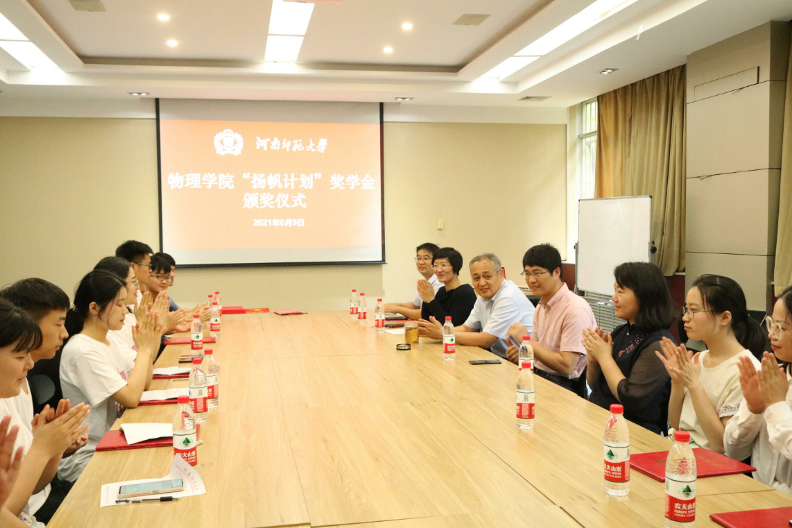 求学师大难忘培育之恩;感恩母校助力学子扬帆。6月9日上午,物理学院在北楼会议室举行物理1998级校友“扬帆计划”奖学金颁奖仪式。“扬帆计划”委员会代表,物理学院相关负责人,全体获奖学生,各年级学生代表参加了颁奖典礼。