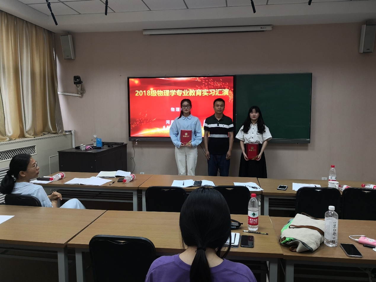 百年大计,教育为本。教育大计,教师为本。习近平总书记曾这样评价新时代人民教师:三寸粉笔,三尺讲台系国运;一颗丹心,一生秉烛铸民魂。教育实践能力是教师素养的核心,教育实习是师范专业人才培养的一个重要实践环节,是走好教师职业生涯的第一步。为进一步规范、强化我院实践教学效果,加强师范生教育教学能力培养,提升未来教师胜任力,我院于6月17日下午在物理南楼511微格教室举行2018级物学专业校内实习院内展演,经过上一轮组间展演,晋级的8名选手,带着自己精心制作的说课、讲课课件及手写教案参加了本次展演活动。