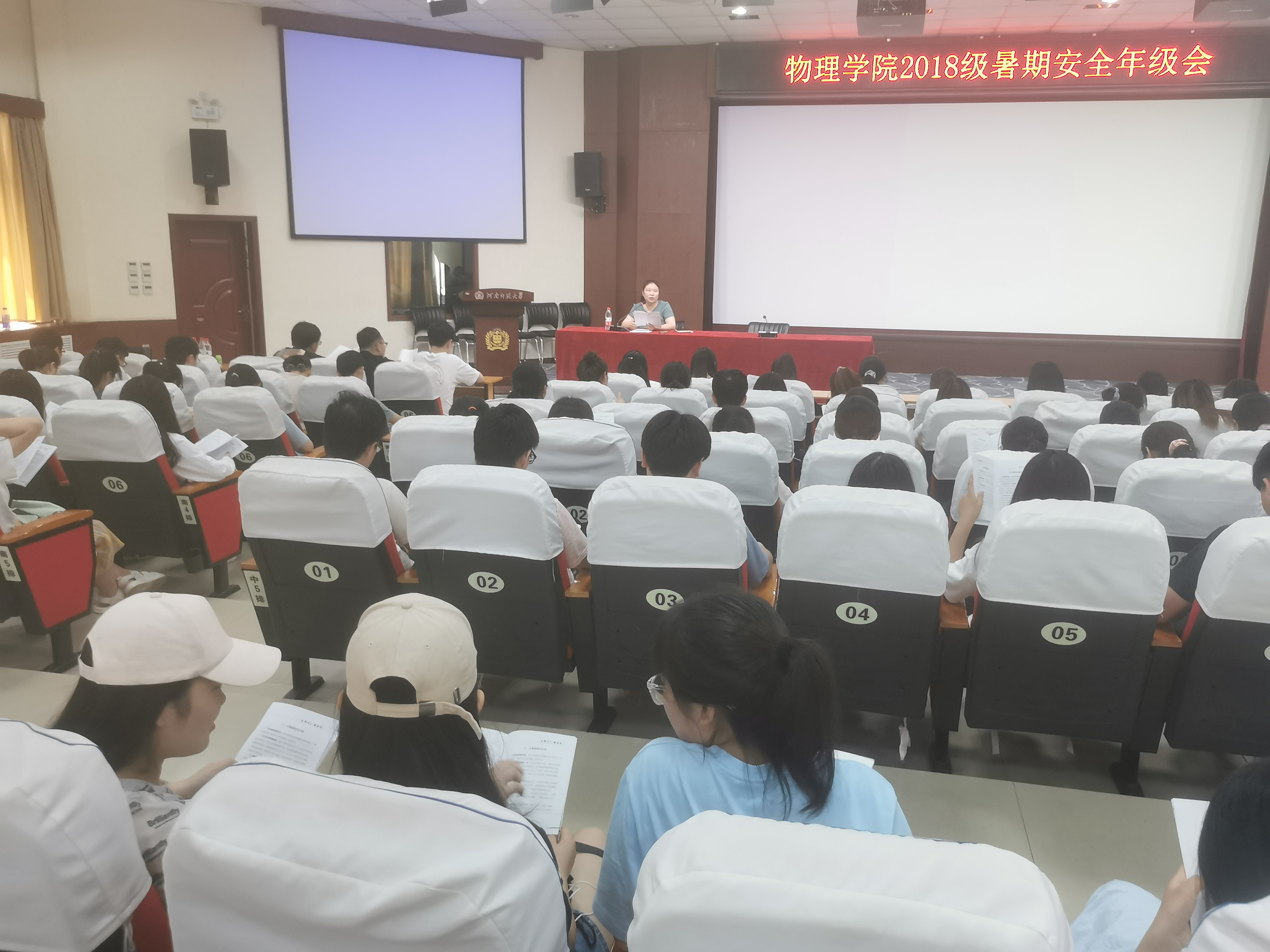 安全无小事,平安伴你行。为加强我院学生安全意识,提升安全管理水平,2021年7月8日中午,我院在物理北楼召开暑期安全主题年级会。辅导员熊子瑞和2018级学生参加本次大会。