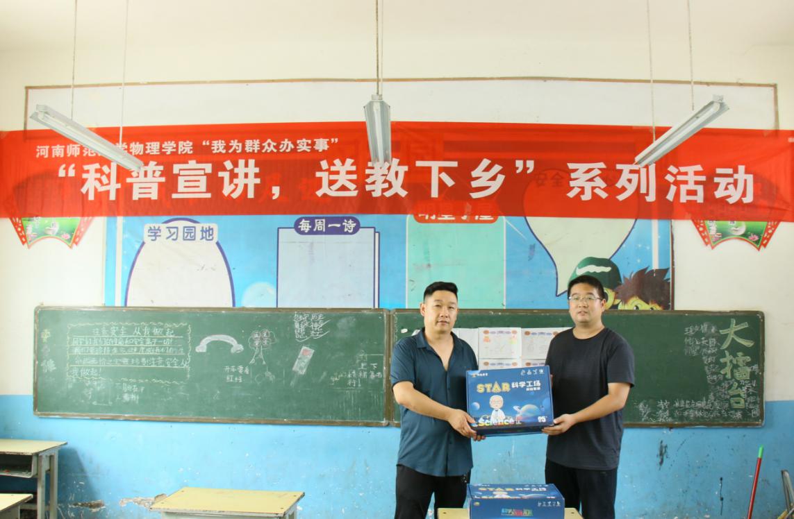 作为伟德官网下载苹果版物理学院“我为群众办实事”的重要组成部分,学院团委书记王丹云老师代表伟德官网下载苹果版物理学院向驻马店市双河小学赠送了30余套科普器材,内容涉及力学、光学、数学等学科,贴近未成年学生的学习和生活,具有较强的知识性、针对性和操作性。