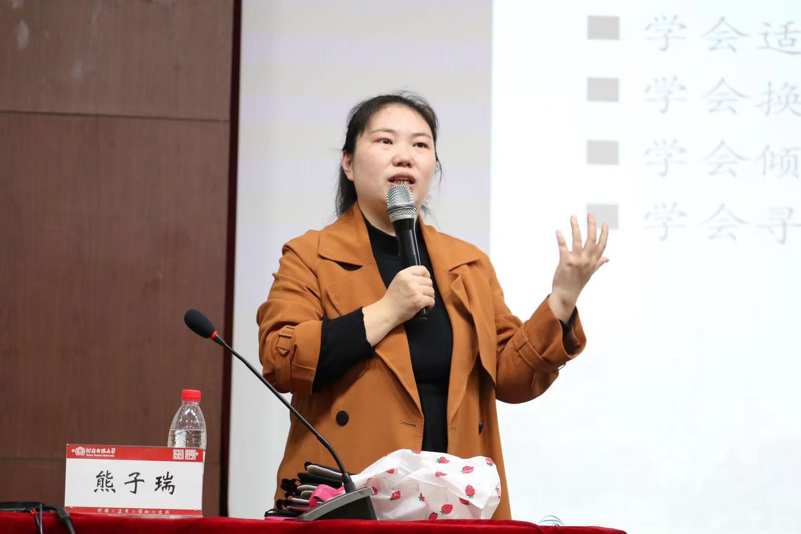 讲座伊始,熊子瑞带领全体新生跟随歌曲指令进行互动,营造良好的氛围。随后,她从学校、学院心理健康教育工作站已有工作出发,介绍了心理健康活动特色;详细讲述了心理与心理健康的概念,强调了心理健康的重要意义;以案例为基础,罗列了大学生常见的心理问题类型及行为表征;分享了心理调适的常用方法和技巧。活动中,她组织了现场同学进行了团队游戏,在场同学踊跃参与。