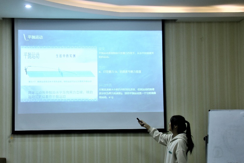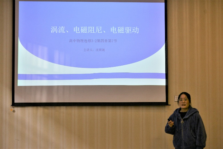 比赛要求选手结合自身专业,在初、高中课本中任选一节,结合PPT进行限时为六分钟的讲课。赛前选手通过翻阅课本,查找资料和试讲等方式,做了充足准备。参赛选手用通俗易懂的语言解释了自己所讲知识点的概念及原理,又通过观看视频和举生活中常见的实例,深入浅出地讲解涉及的知识要点,阐明其中的科学道理,并提出问题,一点点引导学生寻找答案,给予学生独立思考的空间。在讲课的整个过程中,参赛选手镇定自若,教学目标明确,教学逻辑清晰,PPT设计精简流畅,展示了过硬的教学技能和专业素养。讲课结束后,评委从教学过程设计、表达能力和PPT制作等方面对选手进行一一点评,指出参赛选手存在的不足和问题,并肯定其优点,帮助参赛选手扬长避短,更好的完善自己。