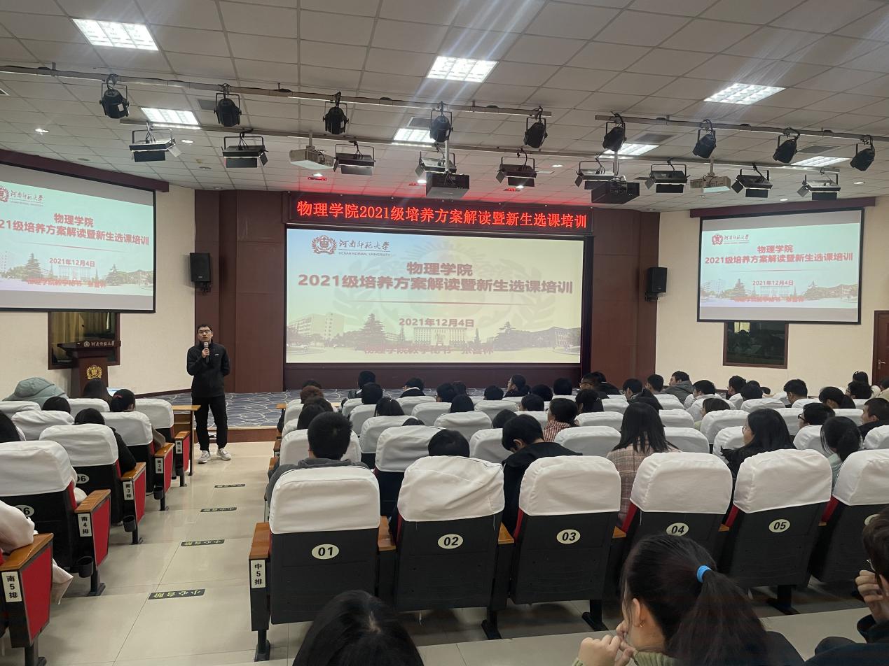 为帮助我院2021级新生充分了解所学专业、树立专业自信、稳定专业方向、明确选课事宜,12月4日上午,物理学院教学秘书张喜林在物理北楼三楼报告厅为学院2021级新生作了题为《培养方案解读暨新生选课培训》的专题讲座。