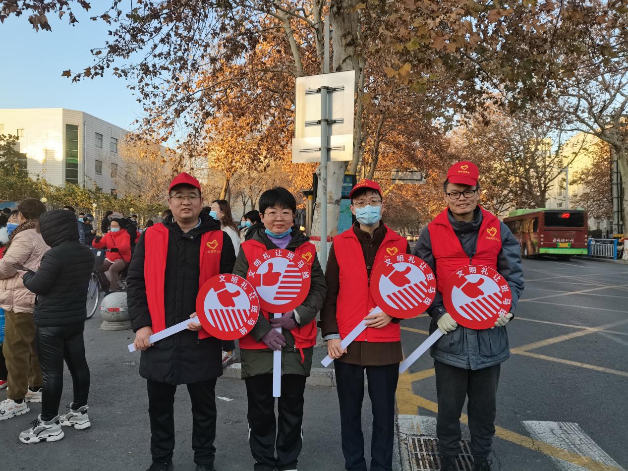 为助推新乡市文明城市创建常态化制度化,以安全、有序、文明的交通秩序迎接新乡市全国文明城市年度测评,在学校文明办统一安排和学院党委组织协调下,学院姬清平、尚军、尚亮亮、王丹云四位青年党员教师于12月4日在学校西校区门口斑马线处开展文明交通志愿服务活动。