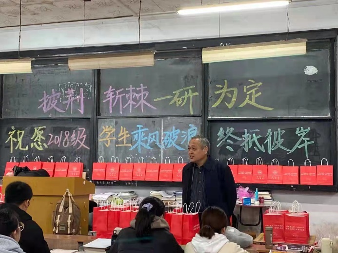 现场,学院领导详细了解了2018级考研情况,对同学们良好精神风貌给予了表扬。“志之所趋,无远弗届,穷山距海,不能限也。”党委书记陈明银对在场学子提出三点希望:一是保持初生牛犊不怕虎的劲头,不畏难,不退缩,努力从无到有、从小到大,把理想变为现实;二是保持会当激流三千里的信心,不抛弃,不放弃,坚定人生选择,敢应战,不断挑战自我;三是保持百尺竿头更进一步的状态,在考研最后的冲刺阶段稳扎稳打,取得优异成绩。