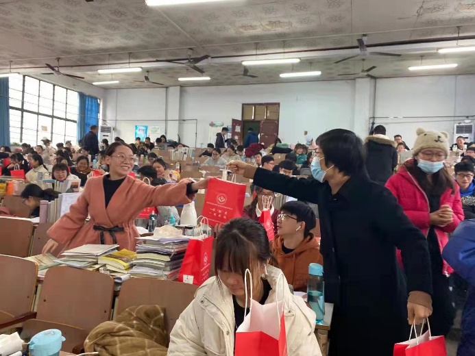 副院长夏从新嘱咐考研学子调整好心态,积极备考,并祝福所有考生以百分百的绝佳状态顺利通过考试。2018级辅导员熊子瑞为同学们讲述了礼品袋上福袋的含义,小小福袋更是寄托了物理学院全体师生对考研学子的殷切期望和祝福。随后,学院领导老师为考研学子分发礼品。