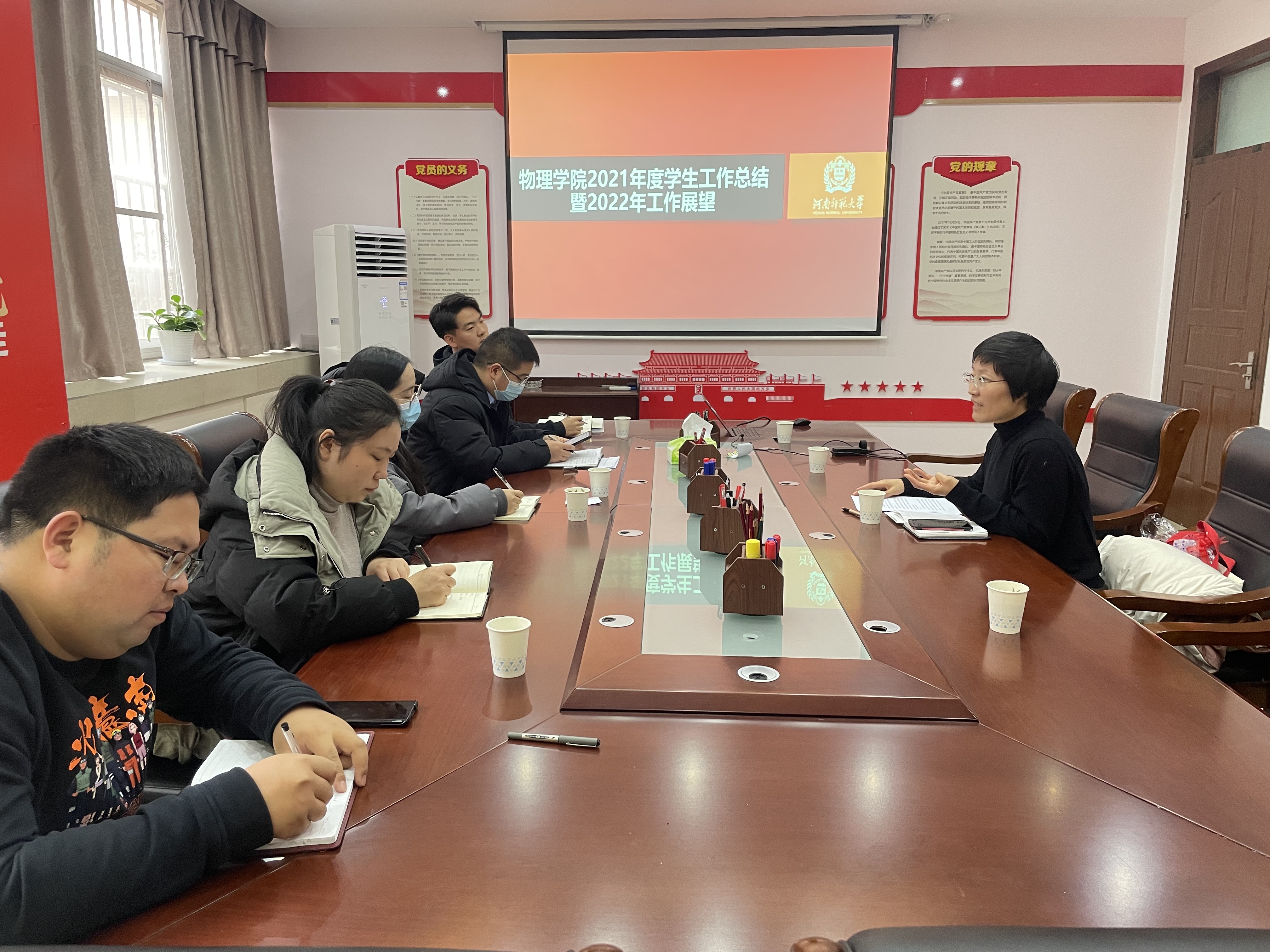 2022年1月7日,物理学院在物理北楼A122举行“物理学院2021年度学生工作总结暨2022年工作展望”会议,学院全体本科生、研究生辅导员参加,会议由学院党委副书记赵旭主持。