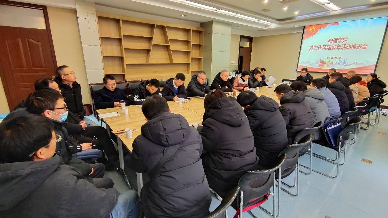 为扎实开展、深入推进 “能力作风建设年”活动, 2月18日上午,我院在物理北楼C103召开“能力作风建设年”活动推进会。我院领导班子、全体科级干部参加了会议,会议由副院长赵凯主持。