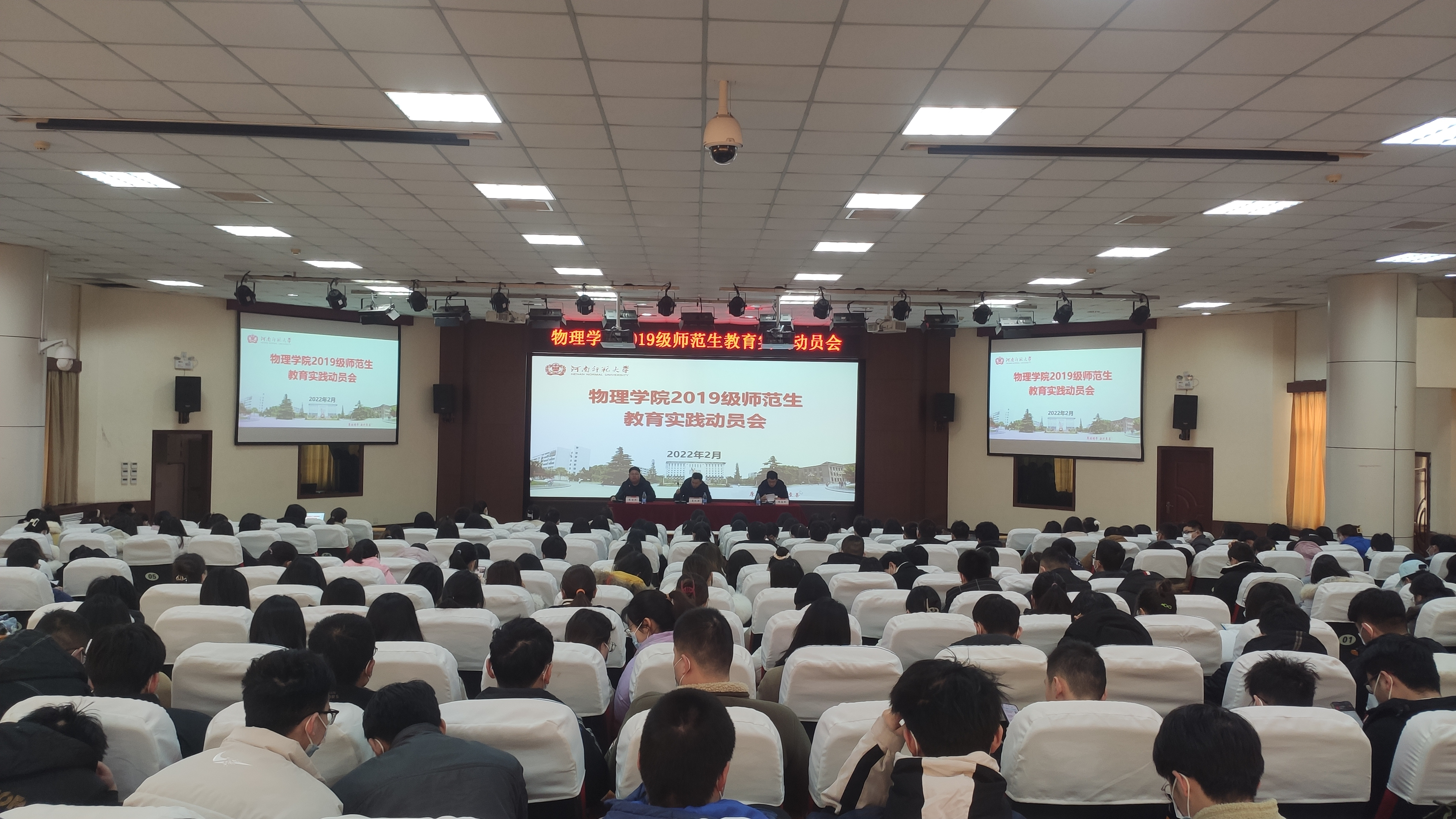 为深入学习贯彻习近平总书记关于教育的重要论述,落实立德树人根本任务,开展师范专业教育实践工作,引导师范生进一步明确实习的内容和要求。2月22上午,我院在物理北楼三楼报告厅召开2019级师范生教育实践动员会,我院副院长夏从新、教学秘书张喜林、辅导员张浩兴以及全体2019级物理学专业学生参加了动员会。