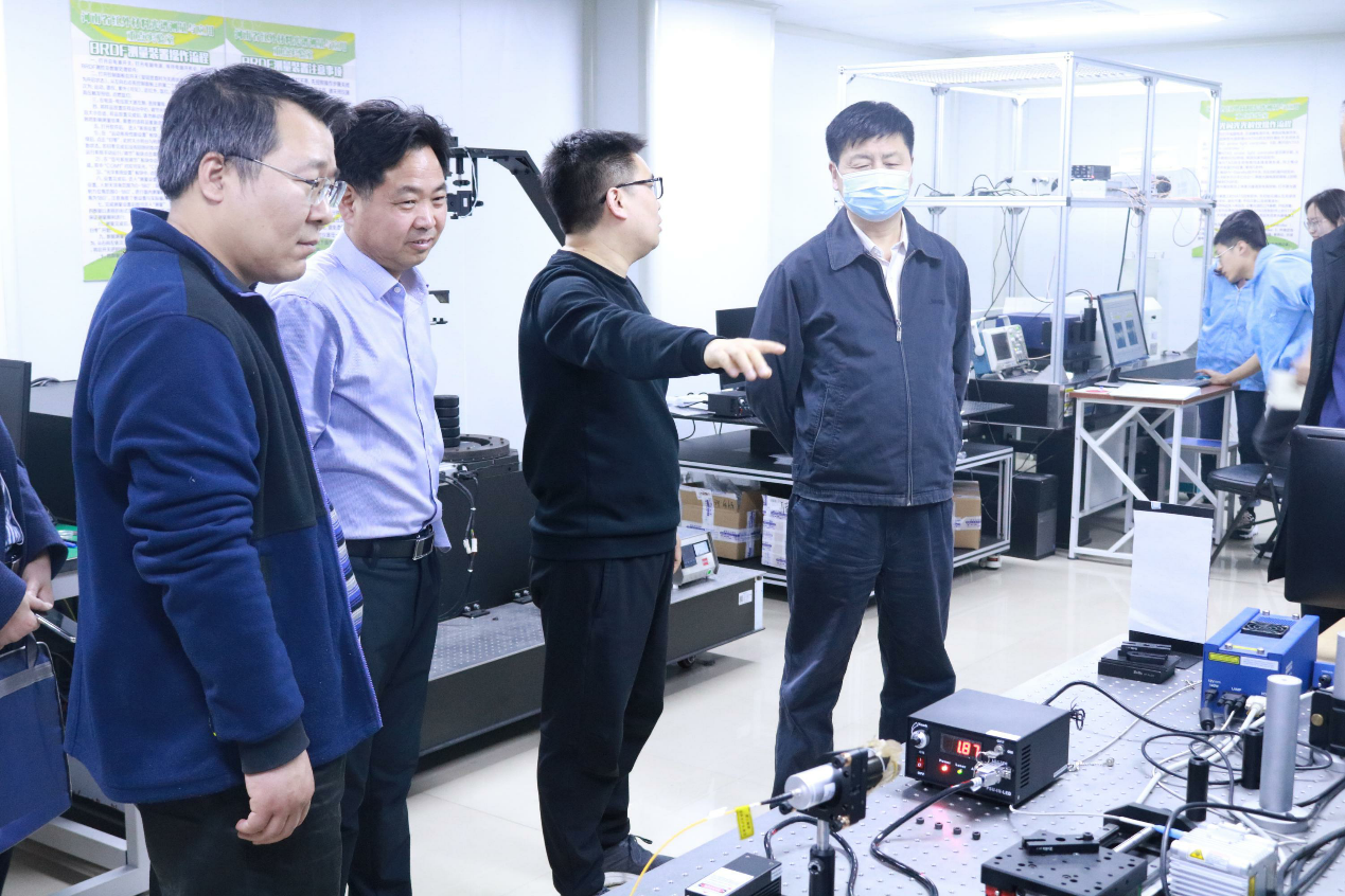 王宗敏首先深入物理学院国家自然科学基金重大科研仪器研制项目—低温光谱发射率测量实验装置、河南省光伏材料重点实验室、光电子技术及先进制造河南省工程实验室等科研创新平台,认真听取了各平台负责人的详细介绍,并与学院领导和相关科研人员进行深入交流。