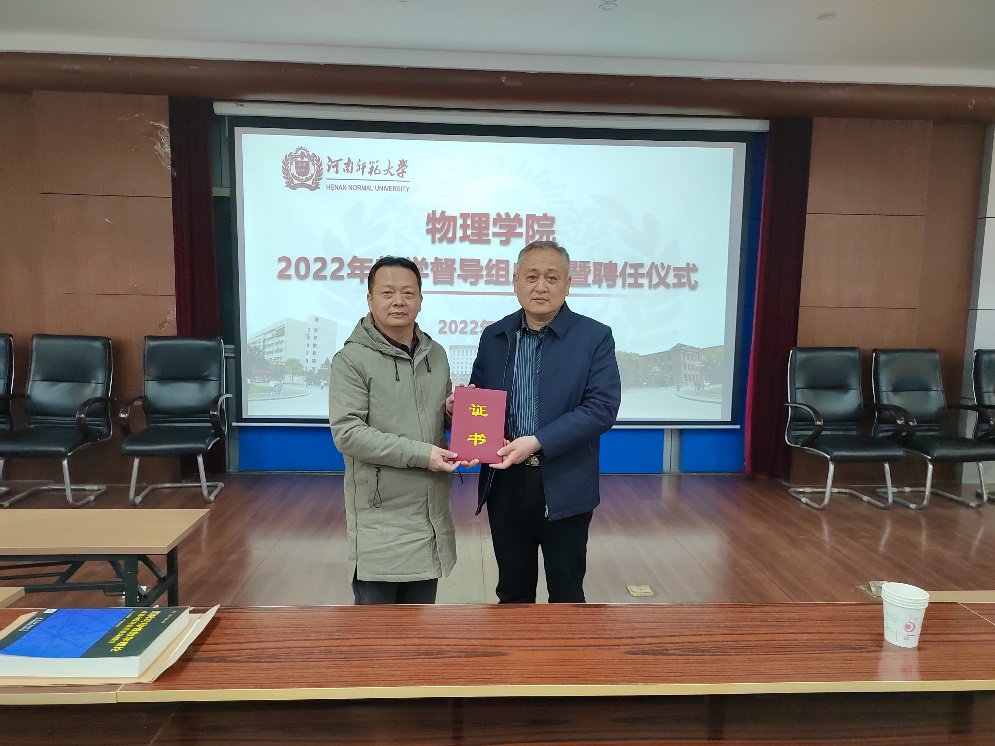 我院2022年同行督导组成立暨聘任仪式在物理南楼二楼报告厅召开。我院党委书记陈明银、教学副院长夏从新及学院督导组全体成员参加会议。