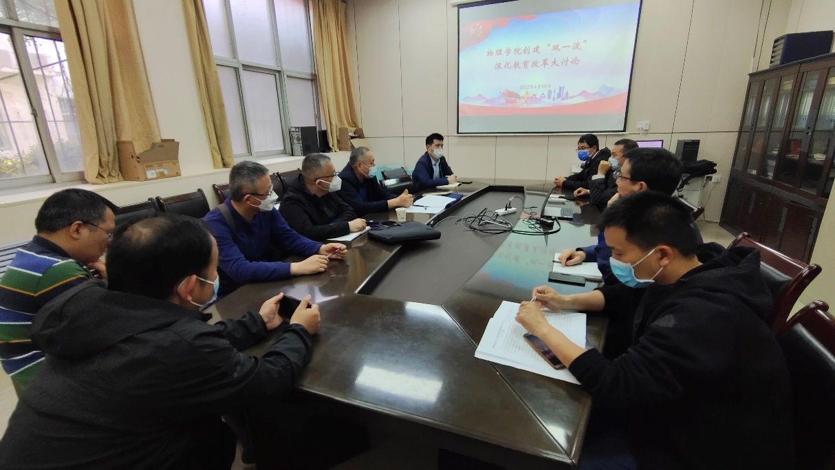 近日,物理学院在物理南楼115会议室召开创建“双一流”学科大讨论,学院党政领导班子、党委委员、相关科级干部参加了会议。会议由学院党委书记陈明银主持。
