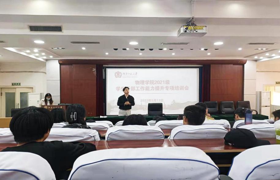 为提高学生干部的综合素质和工作能力,进一步发挥学生干部的模范带头作用,物理学院于5月13日在物理南楼二楼报告厅召开了2021级学生干部工作能力提升专项培训。2021级专兼职辅导员、辅导员助理和全体学生干部参加了此次培训会。