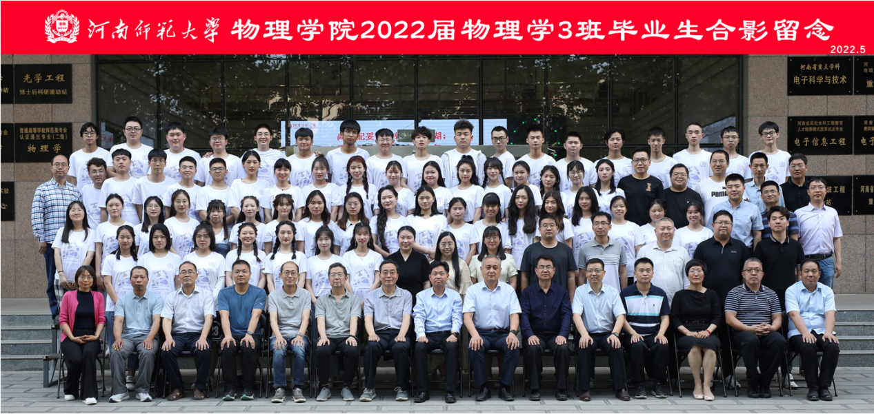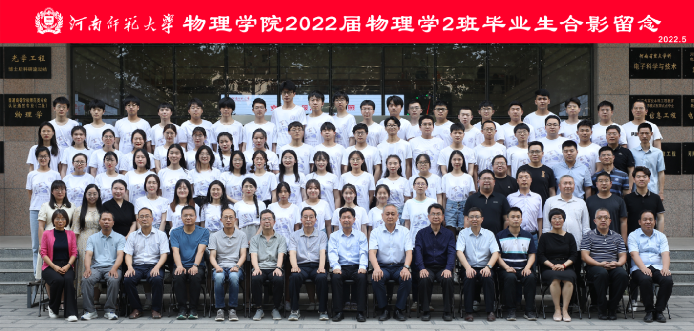 正逢盛夏,凤凰花开,毕业季如约而至。2022年,我院共有315名本科生圆满完成学业、开启新的征程。5月24日,为见证这一神圣时刻,我院特组织开展合影留念活动。315名本科生身着统一定制的纪念衫与学院领导老师留下珍贵合影。据悉,纪念衫正面左上方为校徽,中心图案为“地球与宇宙星辰”,体现了学院学科特色;右下角采用“薛定谔的猫以及方程”图案,希望学生能够积极探寻物理奥秘,永存求知精神;背面根据各专业特点、班级特色,设计独特的标志和图案,祝愿每一位物理学子都能坚守心中所热爱的,永远保持积极面对未知的热情,勇敢追逐属于自己的星辰大海。