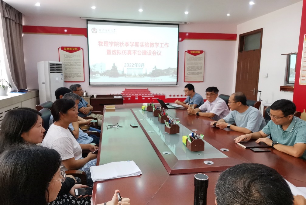 为推进新学期物理实验教学工作及部署虚拟仿真实验教学平台建设,8月31日,物理学院在物理北楼党建活动室召开秋季学期实验教学工作暨虚拟仿真平台建设会议,物理学院相关领导、实验中心全体教职员工参加了本次会议。