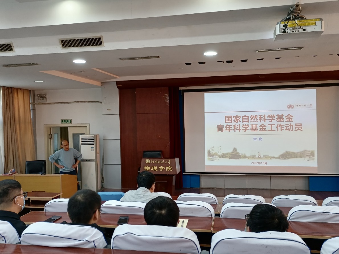 常钦简要介绍了学校及学院近3年来的国家自然科学基金青年项目的申报和立项情况,从多个层面阐述了国家自然科学基金青年项目的重要性和申报注意事项,并督促青年教师们务必要格外重视青年基金的申报工作,尽早着手准备申请书的撰写工作。