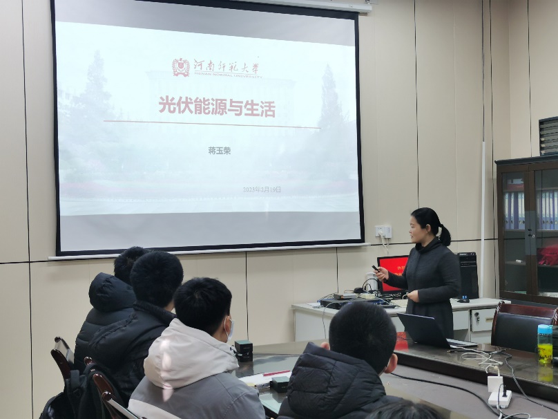 “豫英计划”活动于上午九点在物理南楼115会议室正式开始,首先张喜林老师为同学们介绍了“豫英计划”的背景、宗旨、意义和活动安排,并希望同学们珍惜学习机会,积极参与到指导教师的科研项目中去,通过系统的学习,提升自己的创新意识、科学素养和实践能力。孟举老师给同学们介绍了物理学院的发展历史和取得的丰硕的成果,让豫英计划同学们对物理学院有了更加深刻细致的了解。蒋玉荣老师给大家作了《光伏能源与生活》的科学报告,在报告中蒋老师生动细致的介绍了河南省光伏材料重点实验室的基本情况、太阳能电池的发展和我院取得的最新的成果,报告结束后带领同学们一起参观了河南省光伏材料重点实验室,给同学们详细讲解了实验仪器的工作原理和相关物理知识,并和同学们进行了细致的讨论。活动之后,同学们纷纷表示此次活动收获颇丰,丰富了自己的知识储备,扩展了自己的科学视野。