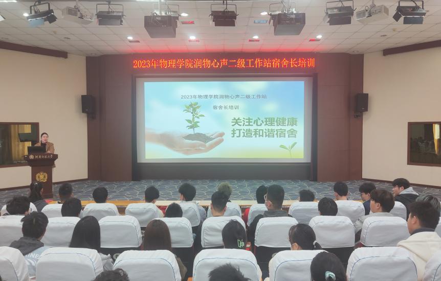 为切实提高学生心理健康水平,营造和谐宿舍环境,学院润物心声心理健康二级工作站在物理北楼三楼报告厅开展宿舍长培训活动,相关负责人、全院宿舍长参加本次活动。
