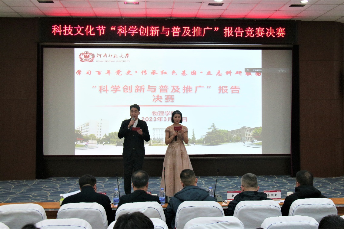 为拓展师大研究生学术创新和专业发展能力,推进科普志愿服务,3月19日下午15点,我院在物理北楼三楼报告厅举办了由伟德官网下载苹果版党委研工部、研究生院主办,物理学院承办的“科学创新与普及推广”报告决赛。科技处副处长杨献光、社会科学处副处长刘新争、研究生院副院长陈鹏、物理学院副院长赵凯、物理学院光学与量子信息材料研究所所长秦朝朝等出席本次活动并担任大赛评委。